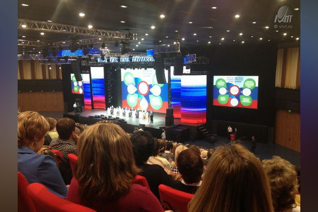 В Воронеже в преддверии нового учебного года 29 августа 2013 года прошел ежегодный городской образовательный Форум, на котором обсуждали перспективные направления развития муниципальной системы образования. В работе Форума приняли участие более двух тысяч педагогических и руководящих работников муниципальных учреждений городского округа города Воронежа. В работе ежегодной августовской встречи приняли участие губернатор Воронежской области Алексей Гордеев, председатель Воронежской областной Думы Владимир Ключников, председатель Воронежской городской Думы Владимир Ходырев. Впервые в Воронеже в рамках работы Форума прошла выставка технических средств, предлагаемых к использованию в образовательном процессе. ВИВТ, понимая всю важность укрепления связей и налаживания взаимодействия между школой и высшим образованием, принял участие в Форуме, а также представил экспонаты современного оборудования и собственные разработки, используемые в процессе обучения в вузе. Сегодня инновации прочно входят в нашу жизнь и уже завтра становятся привычными реалиями повседневности. В ВИВТ понимают современную специфику образования – постоянную ориентацию на будущее и всегда руководствуются этим принципом. Институт оснащен новейшим оборудованием, которое и было представлено на выставочных стендах ВИВТ: сенсорные моноблочные компьютеры под управлением Microsoft Windiows 8.1; 3D принтер; планшетные компьютеры Microsoft Surface и ASUS Transformer, содержащие широкий спектр обучающих программ и расширяющие рабочие столы моноблоков; интерактивный сенсорный терминал, содержащий всю необходимую корпоративную информацию о вузе для студентов и сотрудников, позволяющий считывать радиокарту-пропуск для аутентификации услуг; конструкторы роботов Lego Midstorms NXT 2.0, выполняющие широкий спектр запрограммированных функций. Все представленные экспонаты активно используются в учебном процессе. Демонстрировали оборудование, рассказывали о технике его применения Преображенский Юрий Петрович, начальник отдела информатизации и менеджмента качества ВИВТ, доцент, кандидат технических наук; Ермолова Валентина Викторовна, преподаватель информатики; Анашкин Антон Михайлович, системный администратор. ВИВТ на Форуме представляли, рассказывали о проектах и программах, разработанных вузом, проректор по развитию Бросова Карина Николаевна, декан факультета дополнительного профессионального образования Орлова Светлана Владимировна, Преображенский Юрий Петрович, начальник отдела информатизации и менеджмента качества ВИВТ, а также преподаватели и другие сотрудники института. Пленарное заседание Форума посетили ректор ВИВТ Львович Игорь Яковлевич и проректор по организационно-воспитательной работе Багрянцев Александр Владимирович. Как и было заявлено, Воронежский городской образовательный форум стал открытой площадкой для профессионального обсуждения актуальных вопросов развития воронежского образования. Разносторонняя образовательная деятельность Воронежского института высоких технологий вызвала живой интерес посетителей и участников Форума.
